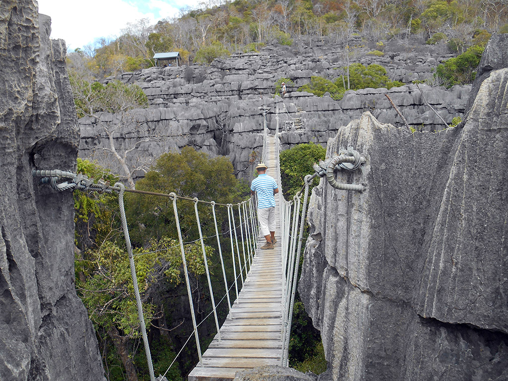 The park is wonderful and makes you feel you were in the middle of the jungle (about 108 Km from the city of Diego-Suarez. It is a spectacularly eroded limestone fortress of sharp ridges, patches of dense tropical jungle, deciduous forest, deep caves and canyons (actually it is the biggest underground network of Africa) and rushing rivers.