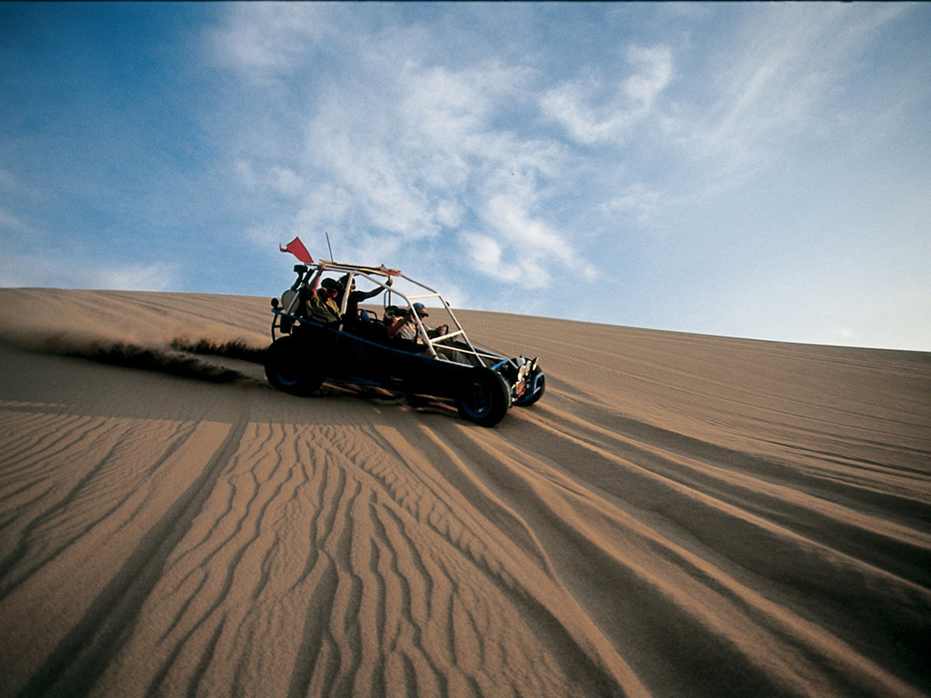 Take an adventurous dune buggy ride through the Ica desert; it is the most enjoyable way to see the desert while having lots of fun. This service is made to offer a new spectacular point of view to tourists visiting the Ica desert. This special OFF-ROAD tour in the desert is realized with special cars called Dune-Buggies that we named ''Areneros Tubulares''. Thanks to their structures we can enter places that are inaccessible to other vehicles. The pilots are well prepared and your safety is their main priority. We will provide you with eye and face protection for the tour.