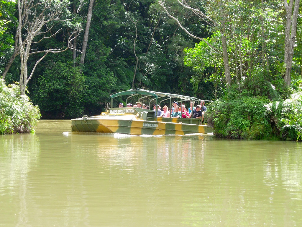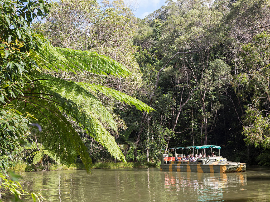 Board an amphibious World War II Army Duck for a land and water adventure through the rainforest, as your Duck Captain identifies and explains fascinating plants including ferns, orchids, strangler figs and the infamous stinging tree. As you move through the water, keep an eye out for turtles, fish, eels and water birds, or for birds, pythons and other reptiles on land.