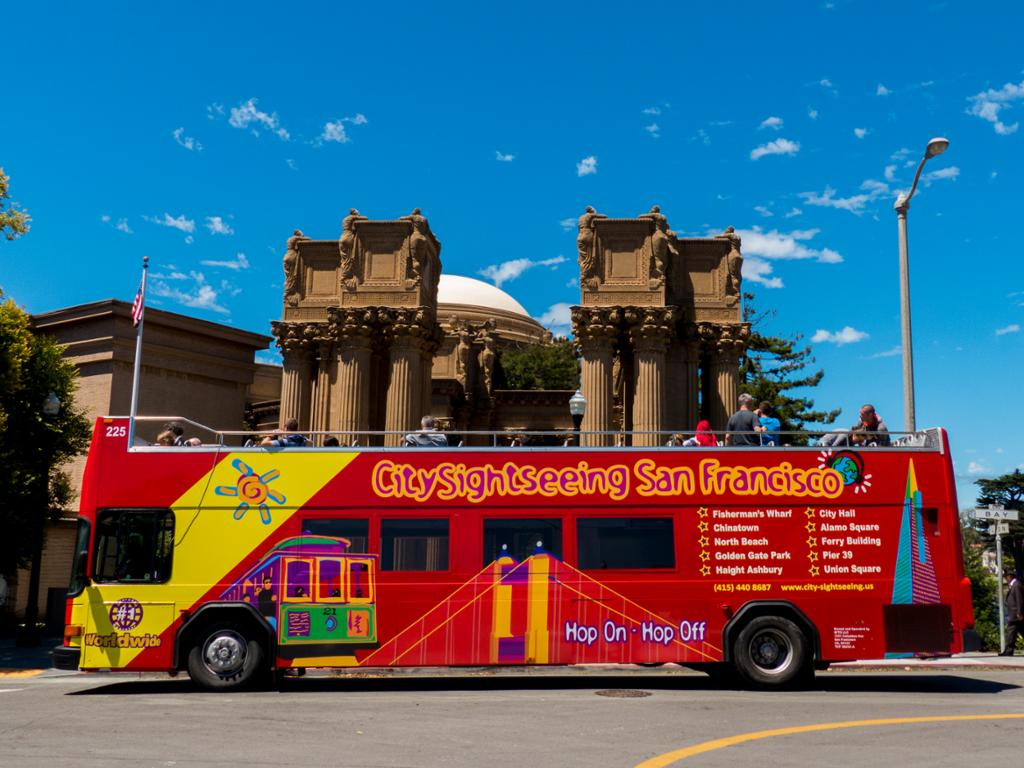 Join us on this live narrated 90-minute tour of San Francisco as we show you the most vibrant neighborhoods of the city! With spectacular views from the top of an original open top Double Decker bus, the tour covers all the major sites of San Francisco. From Fisherman’s Wharf, the Palace of Fine Arts, Bay Bridge to Treasure Island with the best views of San Francisco’s skyline are yours for the taking.