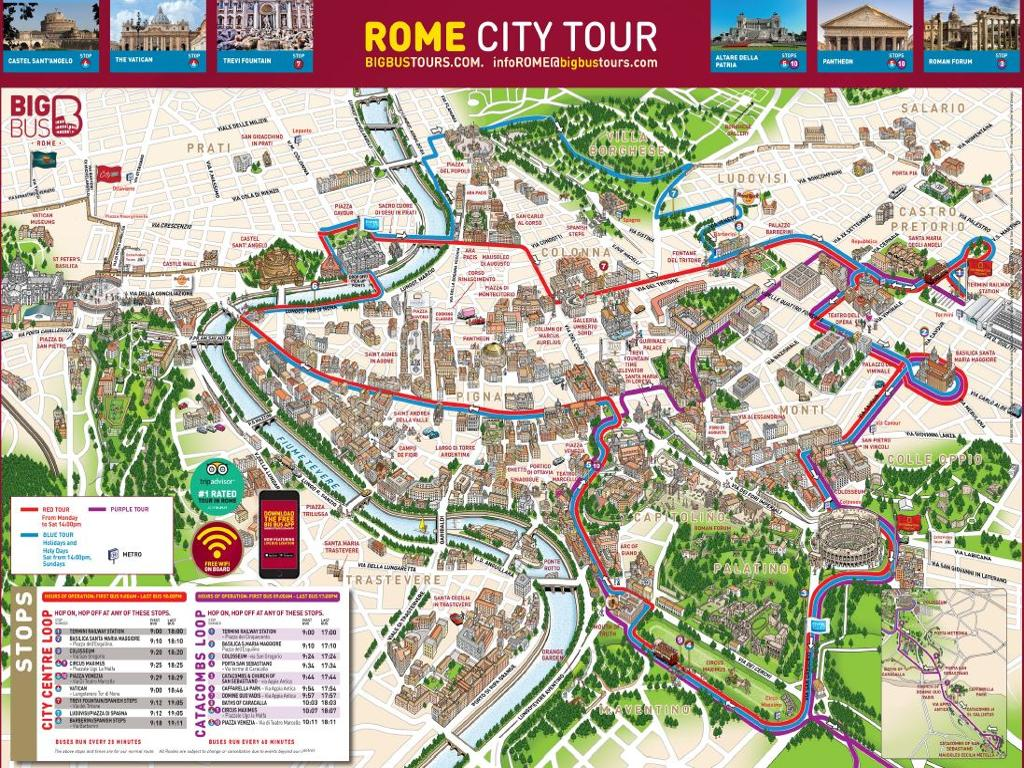 English, Italian, Spanish, French, German, Brazilian, Portuguese, Mandarin, Arabic and Russian Redeem informationVoucher type: PrintedPrinted Voucher. Print and bring the voucher to enjoy the activity. LocationStart point: RomeYou can Hop-On and Hop-Off at any of the stops.End point: At any of the bus stops. ScheduleOpening datesMonday/Friday/Saturday/SundayDuration: 100 MinutesGuide optionsGuide type: AudioguideRequirementsValid photo ID required. Tour subject to weather conditions or certain events that could take place in certain dates.
