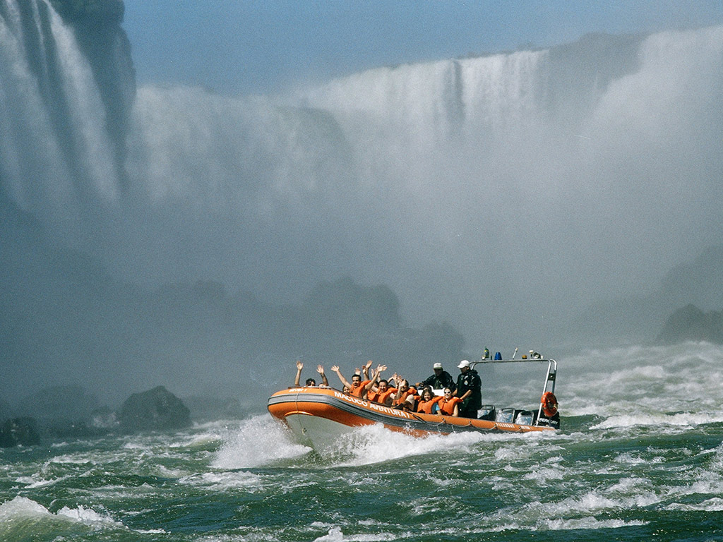 The excitement begins on a Jeep-towed open wagon trail through 3km of the Iguazu National Park, where you will see canyons, wild animals and a spectacular view of the falls.