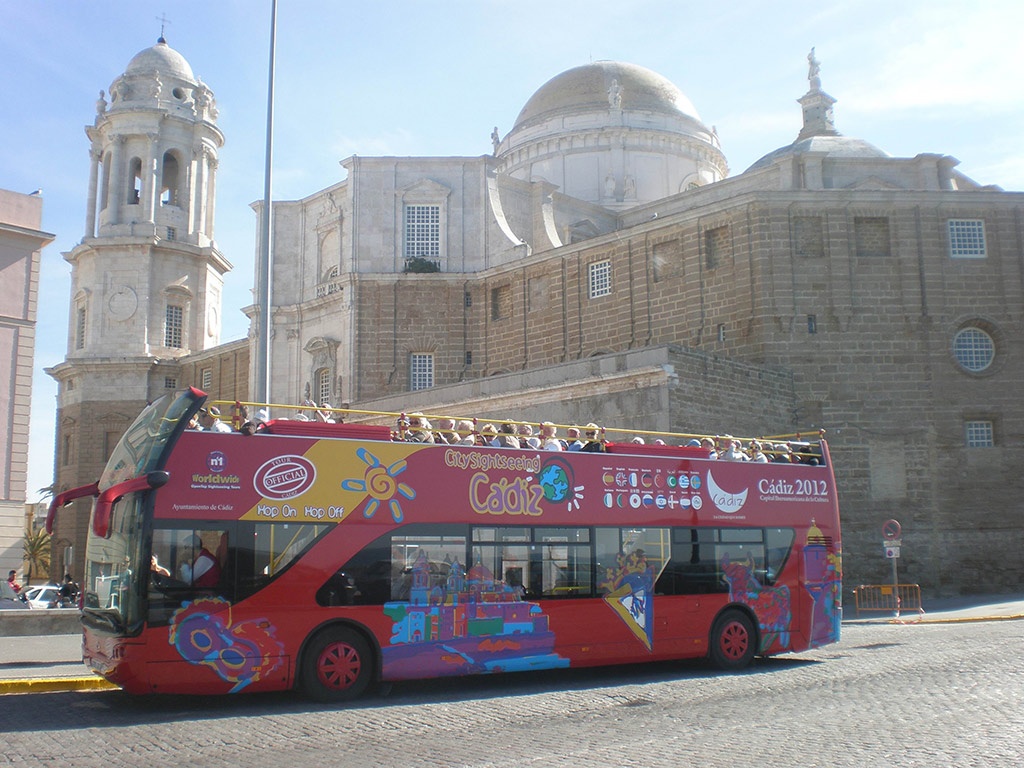 Discover the best sites in Cadiz from an open-top double-decker panoramic bus. Once a launching point for ships sailing across the Ocean to the New World, the 3,000-year old city of Cadiz is now famous for the picturesque, Southern-Spanish charm of its old central quarter. Discover the best sites in Cadiz from an open-top double-decker panoramic bus. Once a launching point for ships sailing across the Ocean to the New World, the 3,000-year old city of Cadiz is now famous for the picturesque, Southern-Spanish charm of its old central quarter.Travel around Cádiz on the top deck of our double-decker buses. City Sightseeing Cádiz takes you around the city and along the coast. If you wish to visit one of the city’s most famous landmarks, the Cathedral, just hop off at bus stop 7. The Plaza de la Catedral houses both the Cathedral and the baroque Santiago church, built in 1635. Lovers of architecture and culture may also wish to visit any number of the city’s other churches including Iglesia de la Palma, Iglesia del Carmen, Iglesia del Rosario, Iglesia de San Antonio and Iglesia de Santo Domingo.