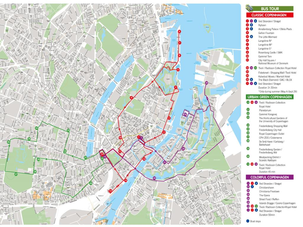 Classic tour operates daily Redeem informationVoucher type: E-VoucherE-voucher. Show the voucher on your mobile device to enjoy the activity.LocationStart point: Gammel Strand - - - Copenhagen - DKUrban Green Route:Tivoli & Radisson Royal HotelEnd point: Same as the starting pointScheduleOpening dates30/09 - 31/03, Friday/Saturday/SundayColourful Copenhagen Route & Urban Green Copenhagen Route03/06/2018 - 31/03/2020, Classic Copenhagen RouteGuide optionsGuide type: Audioguide