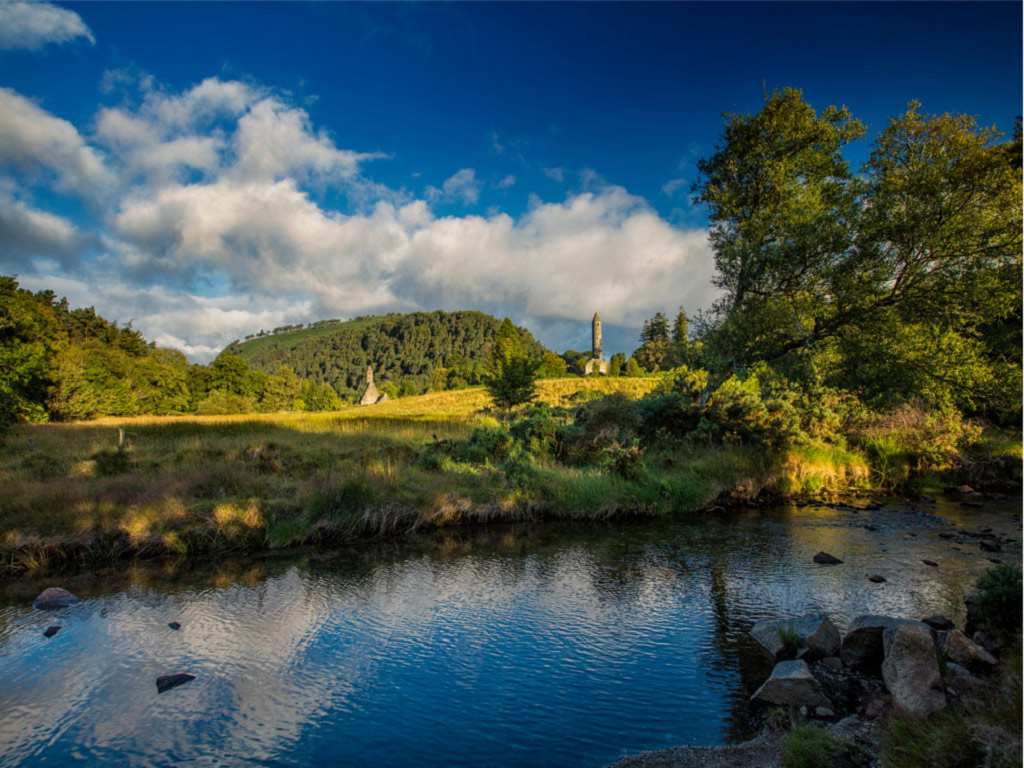 A fantastic tour during which you will enjoy a spectacular train journey south by Killiney Bay, around Bray Head and along the beautiful East Coast to Wicklow, where we swing west into the Mountains. Visit the famous village of Avoca (Ballykissangel in the hit TV series). See hand weaving at the Woollen Mills – great shopping & time for lunch – or maybe a pint at Fitzgeralds famous pub. Visit the ancient Monastic city of Glendalough (valley of the two lakes) all in beautiful mountain scenery.