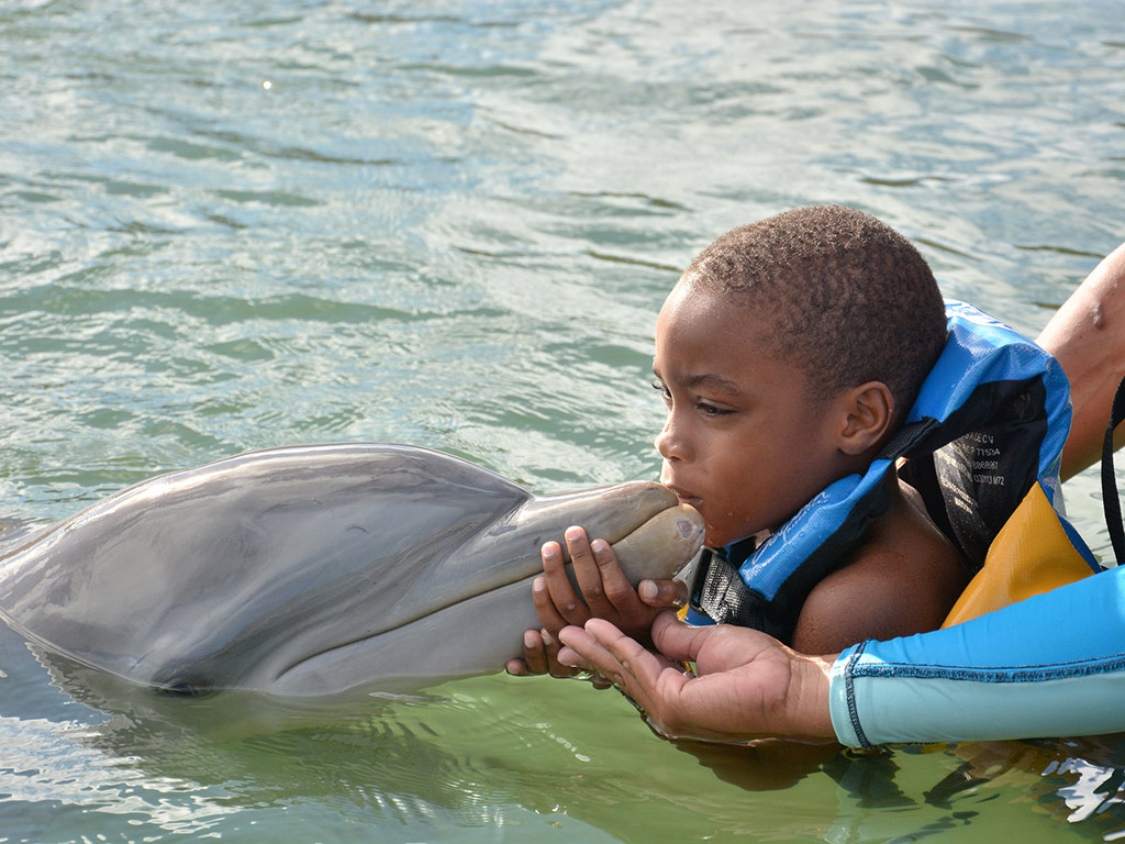After being given some interesting information about dolphins, you will have an amazing encounter as you enter the world of these gentle animals. They will give you a kiss and allow you to caress them while standing in knee deep water. This adventure is best for those who are not comfortable swimming in the sea and the very young. This also is a young family favourite as it gives the little ones a chance to interact with one of the world’s most beautiful creatures.