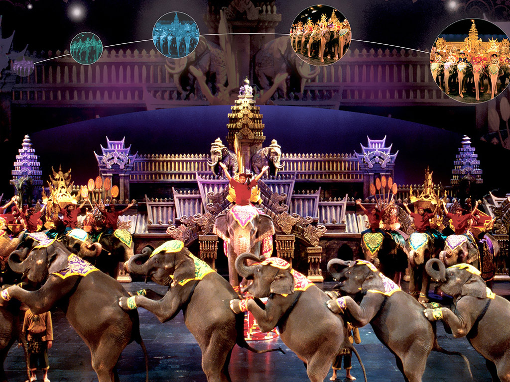 Take your seat in the 3000-seat state of the art theatre for a journey through history through song and dance as it combines the beauty of aerial ballet, acrobatics, pyrotechnics, stunning 4D-visual effects, enormous elephants and a cast of hundreds into one dazzling and unforgettable masterpiece.