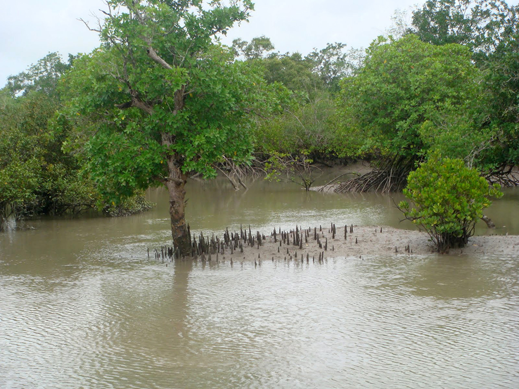Sunderbans, the world's largest estuarine forest and delta covered by mangrove forests and vast saline mud flats is situated on the lower end of Gangetic West Bengal. With a little luck one may experience a salt water Crocodile sunbathing in the mud; a flash in the corner of your eye could be Deer running into the forests.