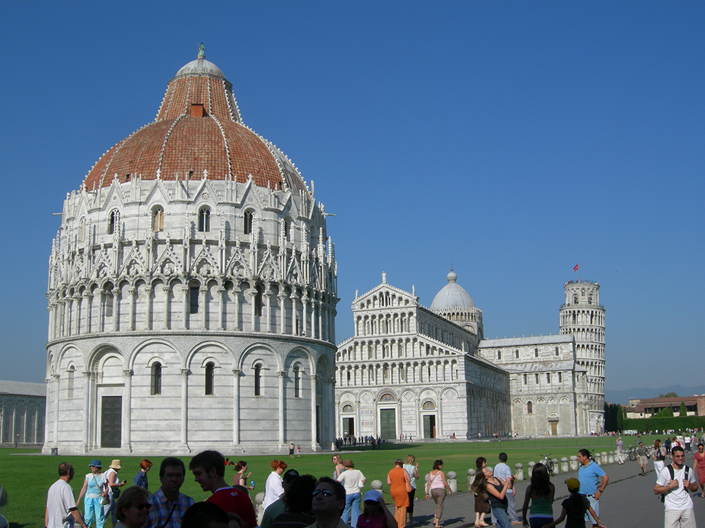 Upon arrival in Pisa, your informative guide will take you on a thorough guided walking tour of Piazza dei Miracoli and its monuments. You will be dazzled by this marvellous square which is dominated by the Cathedral, a model of the distinctive Pisan Romanesque architecture, the celebrated Leaning Tower and the round- shaped Baptistery surrounded by its suggestive columned arcades.