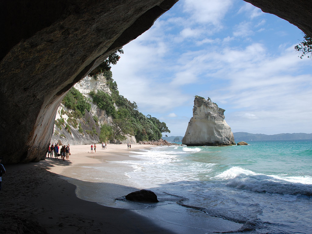 From here it’s just a short drive to magnificent Cathedral Cove, where the Pacific Ocean washes through a natural arch onto a white sandy beach backed by white cliffs. Then we’ll head back over the hills to Auckland taking a different route.