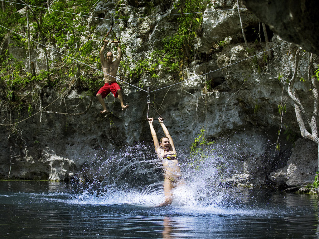 Upon arrival, all guests are greeted at the “Casa Zatara”; this unique “palapa” offers W/C, restaurant and bar, in a beautiful jungle ambiance. Our first activity will be the “Extreme Canopy Tour”, in order to do this our staff will equip each guest with harnesses, security pulleys, helmets and gloves, our personnel will be in charge that all equipment is properly fitted, go through 9 zip lines in the middle of the jungle, enjoying the view of the Mayan jungle.