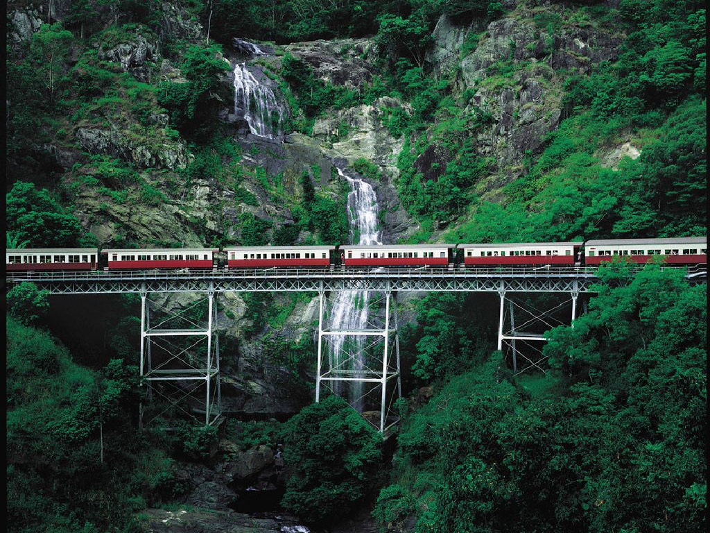 Experience a day of adventure at the village of Kuranda, located in the heart of the World Heritage Rainforest. Take an exhilarating ride on the historic Kuranda Scenic Railway, stroll amongst the beautiful butterflies and soar high above the canopy as you ride the Skyrail Rainforest Cableway. Experience a day of adventure at the village of Kuranda, located in the heart of the World Heritage Rainforest. Take an exhilarating ride on the historic Kuranda Scenic Railway, stroll amongst the beautiful butterflies and soar high above the canopy as you ride the Skyrail Rainforest Cableway. Highlights- Take a scenic train ride through the rainforest - Learn how to throw a boomerang - Admire beautiful butterflies at the Australian Butterfly Sanctuary - Savour a mouth-watering BBQ lunch Embark on an unforgettable day with a ride on the Kuranda Scenic Railway and admire unparalleled views of the dense emerald-green rainforest, steep craggy ravines and picturesque waterfalls as you wind through the World Heritage-listed Barron Gorge National Park.