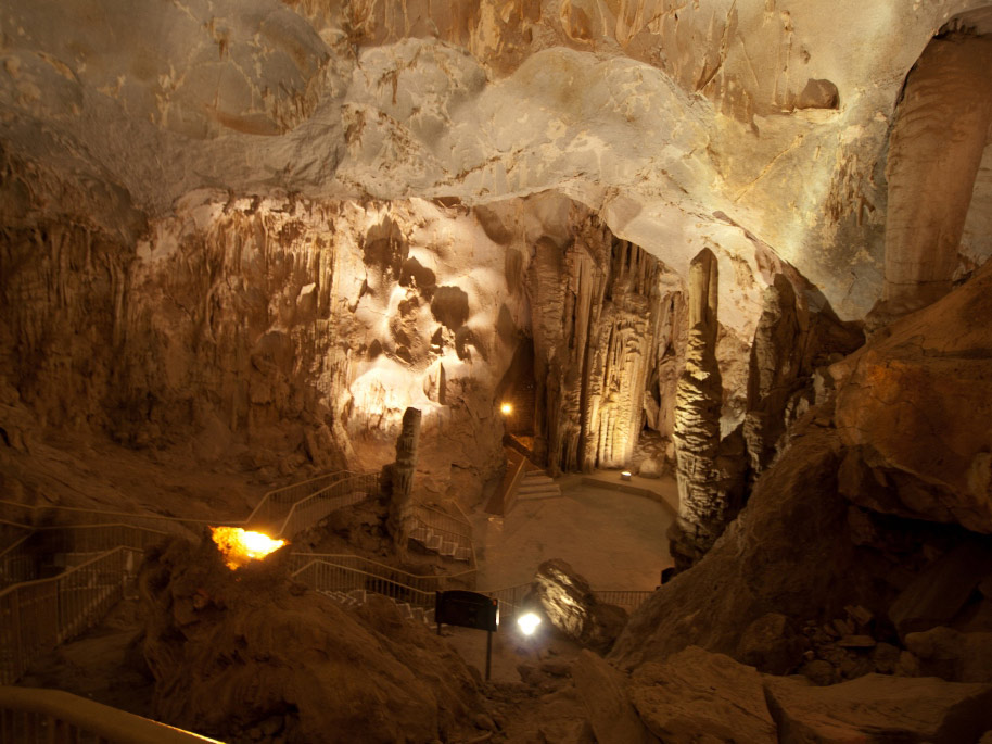 The caves probably formed between 50 and 60 million years ago and the presence of marine fossils such as sea shells and snail shells indicates that they were submerged in sea water. Two different paths start at the entrance. The first one runs 2.5km and the second for 1km and they are full of stalagmites and stalactites.