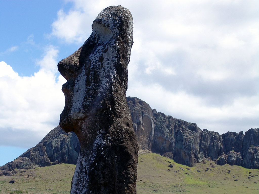 After this visit will continue Puna Pau, red scoria small crater in which were made the Pukao: hats or crowns of the moai. Finally we will visit a particular platform with only one moai, but who has 20 fingers (or 4 hands) at Huri an Urenga. This statue is also peculiar because is firmly lined to the winter solstice. This platform is located at what we now consider the entrance of the Hanga roa town from the Anakena road.