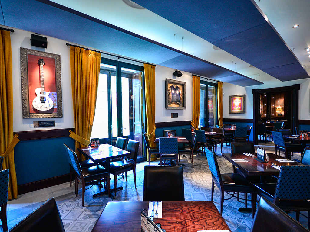 Hard Rock Cafe Seville is located in a beautiful building that was constructed with historical values in mind. The multi-level Cafe includes indoor seating over two floors, an upscale vibrant atrium bar and a Rock Shop. Taking inspiration from local architecture, using traditional Sevillian materials and finishes throughout the design, the highlights are its prominent arches, compelling ceramic tiles and wooden fixtures.
