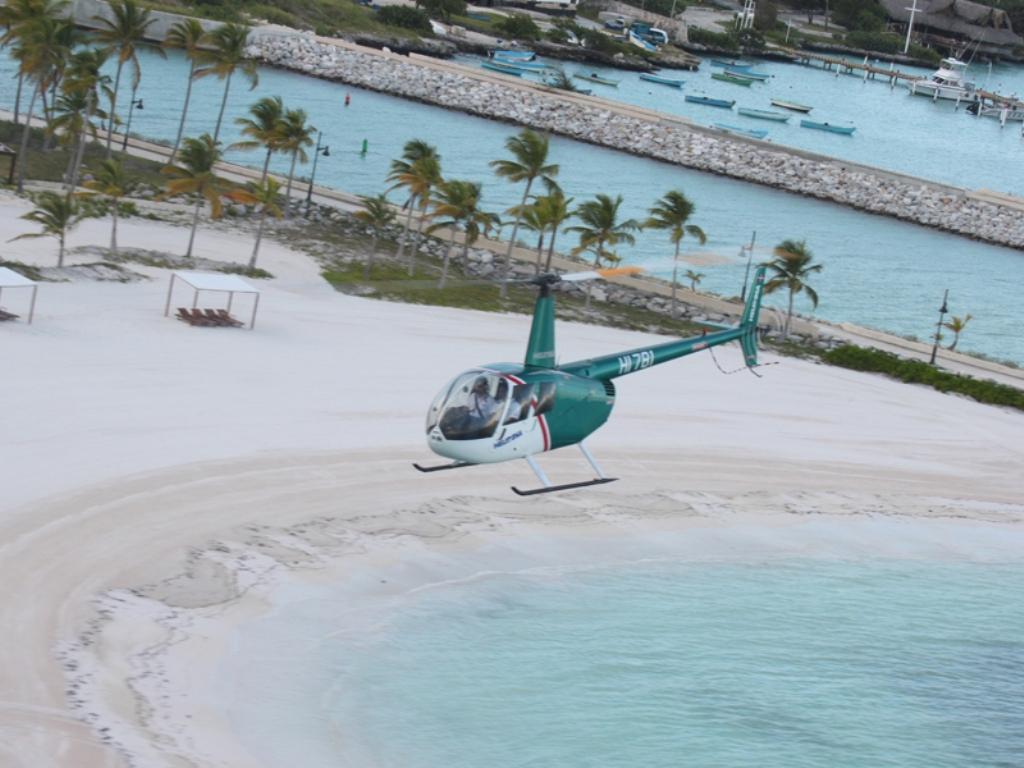 Get a different angle on the tropical paradise around Punta Cana and the spectacular Bavaro coastline in this exhilarating 15-minute helicopter ride. You’ll get amazing birds-eye views of the Dominican Republic’s outstanding scenery so remember to pack your camera! Get a different angle on the tropical paradise around Punta Cana and the spectacular Bavaro coastline in this exhilarating 15-minute helicopter ride. You’ll get amazing birds-eye views of the Dominican Republic’s outstanding scenery so remember to pack your camera!Highlights- Soar like a bird over the lush tropical paradise - Admire unforgettable views as far as the eye can see - Get a unique glimpse of a shipwreck as you hover just metres away from the water! The fun starts with a short transfer to Punta Cana heliport where you’ll meet the pilot, board the waiting helicopter, strap up and soar high into the sky in this once in a lifetime experience. Fly high over the lush tropical vegetation, white sands and pristine turquoise waters as you enjoy birds-eye views of the majestic hotels of Punta Cana, Playa Bavaro and Arena Gorda. Then the pilot will swoop down close to the water for amazing close up views of a shipwreck.