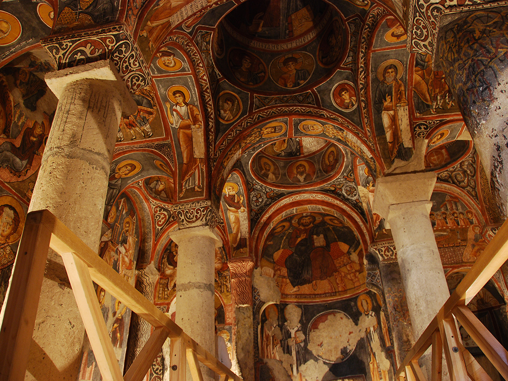 After seeing the best preserved murals of Cappadocia we set off for Love Valley. Locals have proudly dubbed the area “Love Valley”. Love Valley is just one of the many treats in store in Cappadocia, a fascinating corner of it. After picturing these unique pinnacles, Red Valley and Mount Erciyes, we drive to Avanos, a town and district that is noted for its Turkish craft skills. Rug-weaving and pottery-making are important local skills. In this little town you witness how the Cappadocian women have been giving life to loops, unravelling silk cocoons, dyeing the wool using natural plants for generations and men still kicking the ancient Hittite kick-wheel in order to shape the red soil which is obtained from the old banks of the longest river in Turkey, the Red River.
