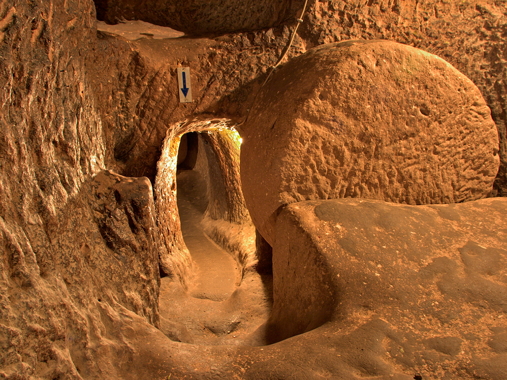 Then we have the lunch at a local family's old house, which has been converted into a restaurant. After having one of the specialities of Cappadocia for lunch, we set off for Ozkonak Underground City in search of traces of Hittites. The city was discovered in 1972 and it differs from others in that, there were holes in ceilings above the doors which enabled the citizens to pour hot oil on any unwelcome visitors.