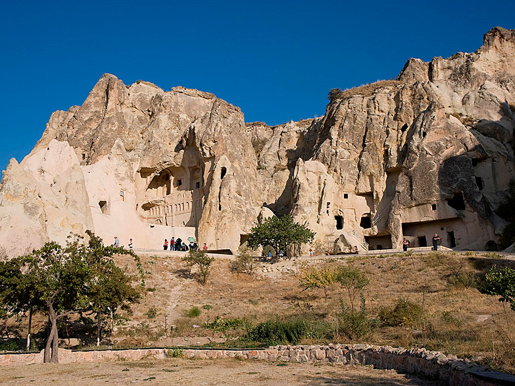 First, we drive to Göreme Open air Museum, which is a monastic complex composed of churches, refectories and dwellings and one of the earliest centers for religious education.There are at least 100 churches and chapels in the museum area dating between A.D. 900 and 1200, each one named (after a prominent attribute) by the local villagers. One of the highlights is Karanlik (Dark) Church, which, because it gets very little light from the outside, has some of the best preserved wall paintings with the brightest colours.