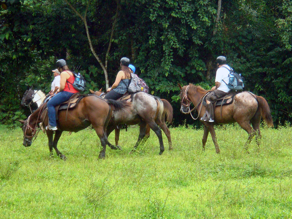 The horseback ride lasts about 3 hours starting at the foot of the mountain and going up through secondary forest terrains and cattle fields as well as crossing through a beautiful primary forest area that takes us to a beautiful iris lagoon.