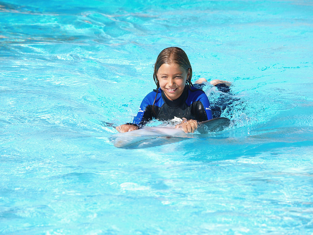 As an added bonus, our program lets you become a dolphin trainer and master of ceremony. Amaze your friends and family and create your own spectacle. With advice from our specialists, you learn how to control when dolphins perform an amazing leap that dazzles the crowd.