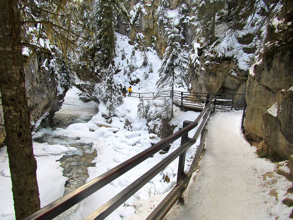 Johnston Canyon is one of the most popular attractions in Banff National Park and has a network of steel catwalks built into the canyon walls that allows you to walk right along this cathedral of ice with airy views into the gorge below.