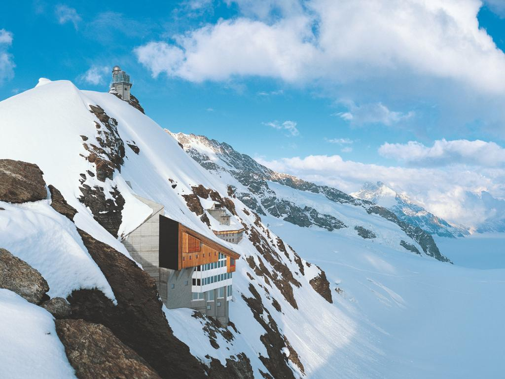 A scenic coach journey via Brünig Pass and along the shores of Lake Brienz takes you to the Bernese Oberland. After a break in Interlaken, uniquely situated between two lakes, continue to Grindelwald. Board the gondola Eiger Express of the newly opened V-Cableway for a spectacular ride to the Eiger Glacier station, where you change to the cogwheel train for a spectacular ride via Kleine Scheidegg to Jungfraujoch. Stunning views of the world-famous triple peaks of Eiger, Mönch and Jungfrau accompany you all the way to the top.