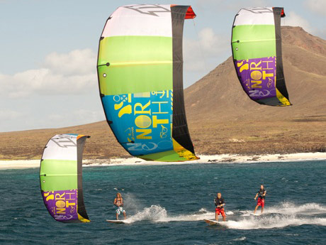Over the years Flag Beach School has developed a highly efficient teaching method running courses downwind using 6 metre semi-ridged inflatable boats. All the boats are equipped with first aid kits, VHF radios, mobile phones and are fitted with either 70 or 80 HP engines. This means that you can learn to kite surf anywhere around the northern tip of Fuerteventura whatever the wind direction. This also means that you won't have to waste time walking back up wind as any time spent in the water is 100% in the water.