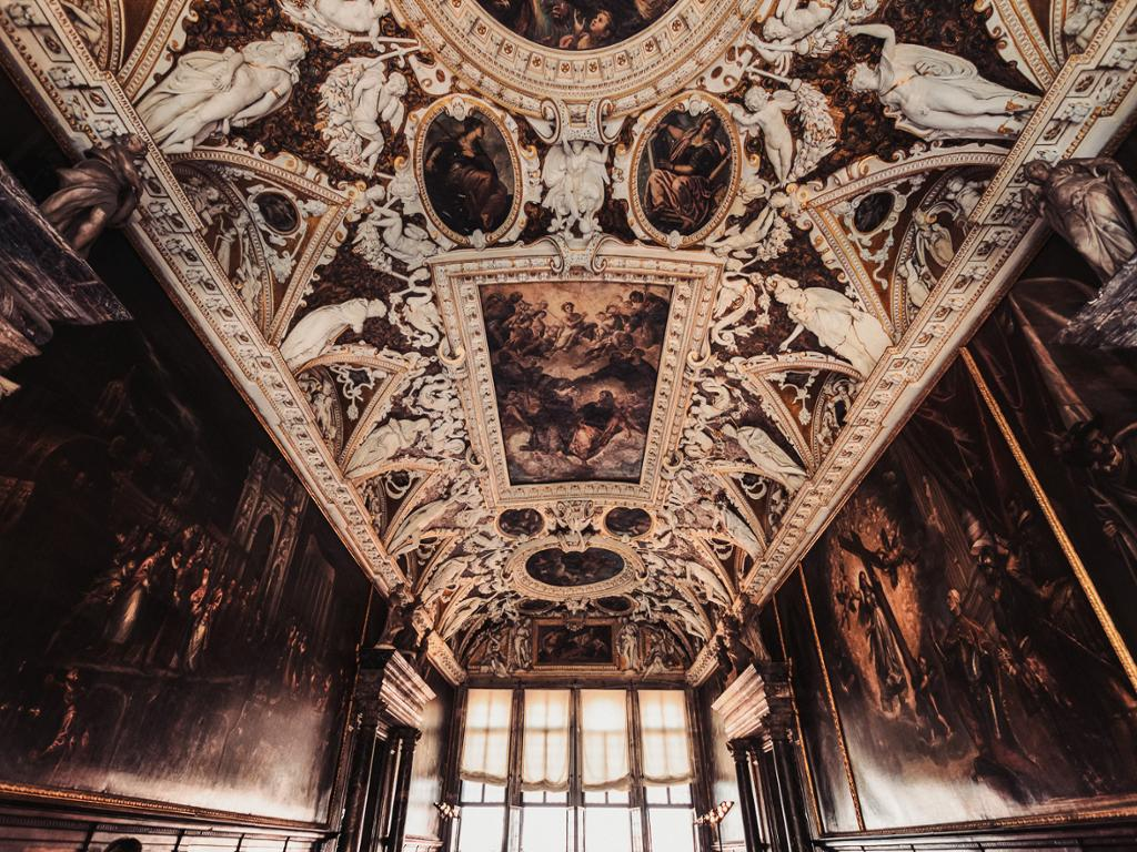 Next it’s off to the Doge’s Palace, where pre‐reserved tickets once again get us past the lines and inside what was the political heart of the empire for hundreds of years. Here you’ll visit the Doge’s own opulent apartments and the Hall of the Great Council where matters of state were decided under beautiful frescoes by Veronese and Tintoretto, You’ll also see the armory and the New Prisons, where you’ll learn about the grim lives of anyone unlucky enough to be taken prisoner. You’ll also find out the secret behind the mysterious black veil that interrupts the official series of Doge’s portraits. Hint: it will make you not want to work in Venetian government.