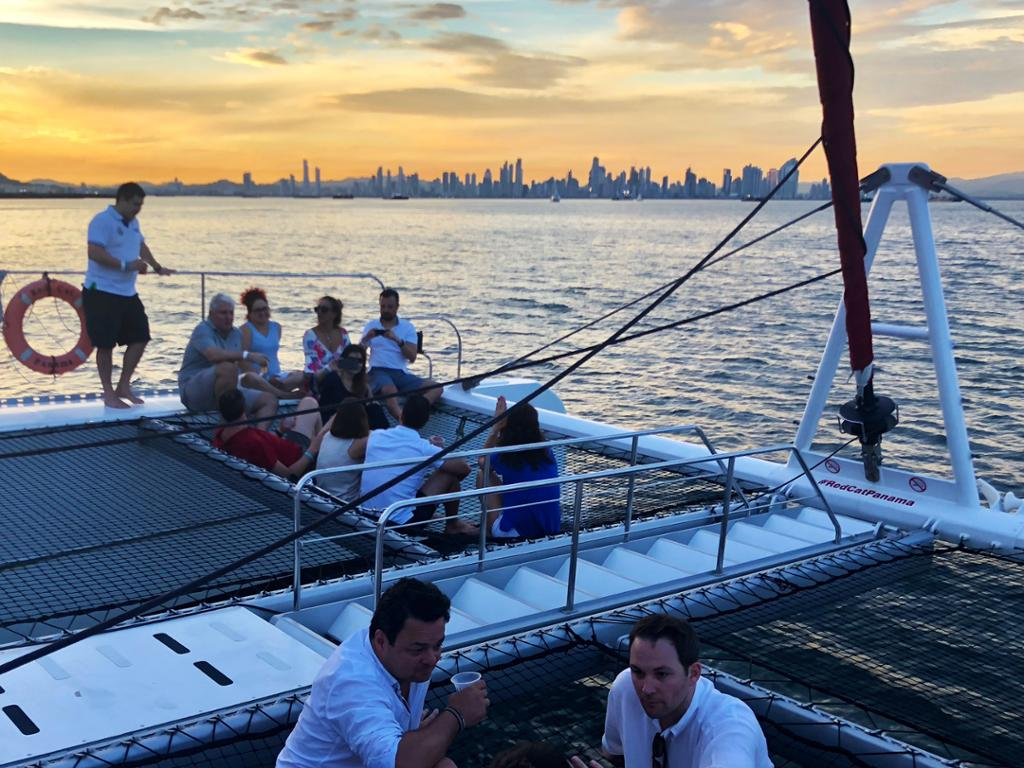 See the wonders of the City from the best seat in the house-on board the Catamaran! While having a cold drink lying down in our big nets, you will be able to see the following points of interest: The most luxurious artificial island of Latin America, Skyscrapers, Big ships waiting to cross the Panama Canal, Causeway of Amador, The Old City and the Bridge of the Americas; all this with a beautiful sunset behind!
