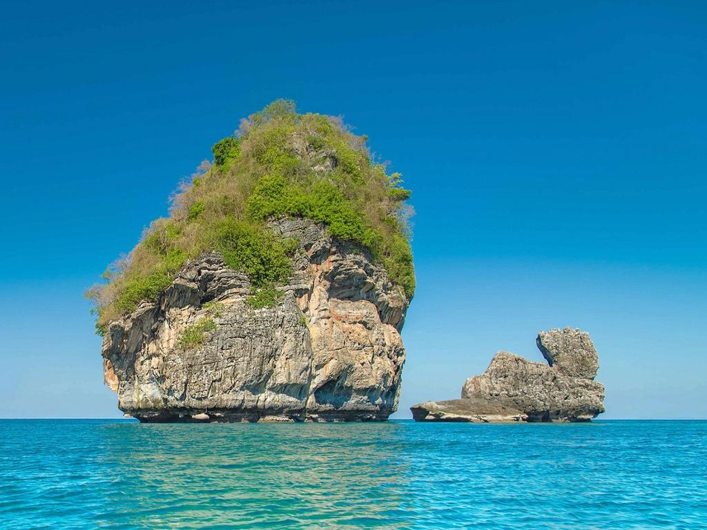 Phi Phi islands are an island group between the large island of Phuket and the Straits of Malacca coast of Thailand, located under Krabi province. Phi Phi Don and Phi Phi Leh are collectively known as Phi Phi Islands. Phi Phi Don is city-like especially at Tonsai Bay -a chaotic, noisy mess of hotels, restaurants, bars and shops- for Phi Phi Islands. On the contrary, Phi Phi Leh is undeveloped, hotel-free and its sea water is clearer than Phi Phi Don. They are widely considered to be amongst the most beautiful island in the world, recently rocking to fame with the filming the Movies 'The Beach' on Maya Bay.
