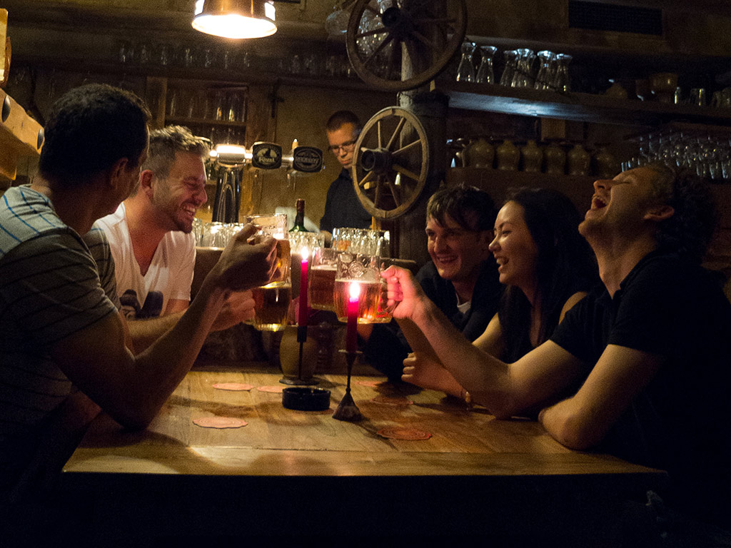 Join the exciting pub crawl and experience some of the best entertainment in Prague. Relax and have a drink after a long day of sightseeing. This special tour gives you the unique opportunity to get acquainted with Prague’s nightlife while socializing with other travellers and locals. Enjoy a variety of drinks and clubs en route as well as the largest dancing stage in central Europe. Join the exciting pub crawl and experience some of the best entertainment in Prague. Relax and have a drink after a long day of sightseeing. This special tour gives you the unique opportunity to get acquainted with Prague’s nightlife while socializing with other travellers and locals. Enjoy a variety of drinks and clubs en route as well as the largest dancing stage in central Europe.Jump in on one of the largest organized pub crawls in Europe and take this unrivalled chance. Meet fellow party-minded travellers from around the world and mingle with the locals of Prague. Receive at the Pub Crawl Bar a free welcome shot of the famous Bohemian absinthe, unlimited delicious Czech beer, Moravian wine and vodka shooters (unlimited drinks during one hour).