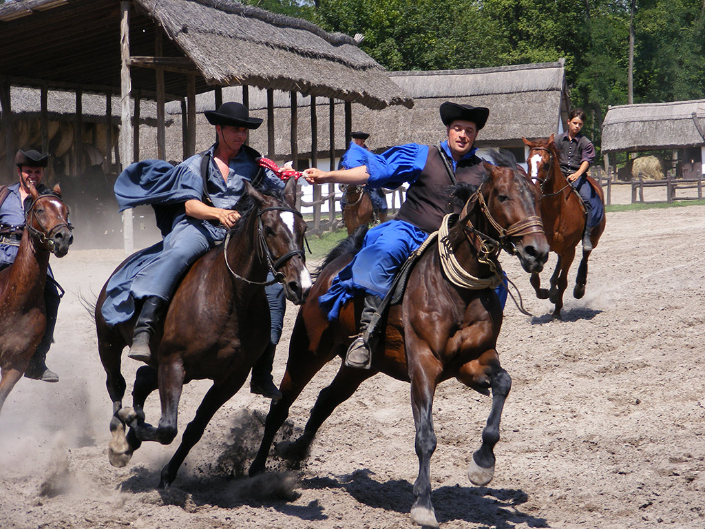 Next, leave the city as you head to a traditional Hungarian farm in the countryside. After being greeted by the horse(-herds)men, you can taste the famous Hungarian welcome drink, Barack Pálinka (Apricot Schnapps) and a Pogácsa (salty scone). You will then step aboard a horse-drawn carriage for an exciting ride around and through the Puszta.