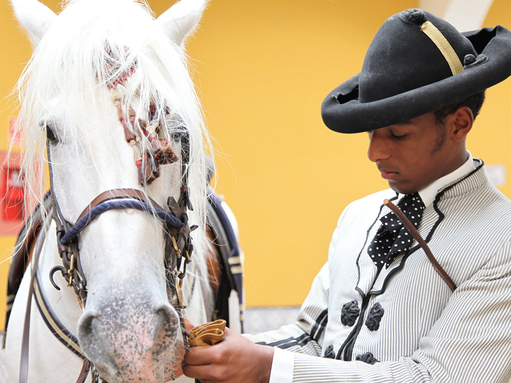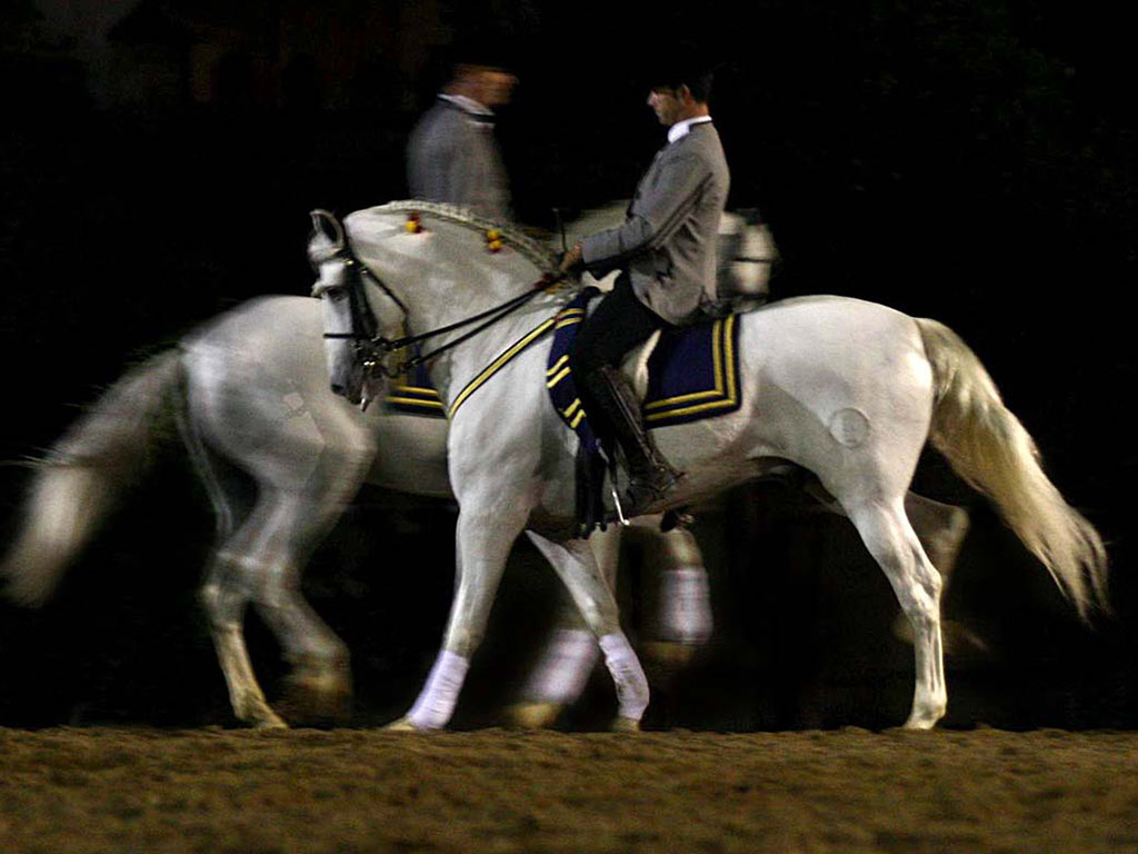 Quintessential Spanish music fills the air in this truly Andalusian arena. Doma Vaquera kick-starts the show and this is based on cattle herding. The horseman rides his horse around the arena using just one hand, beginning with a trot which becomes a gallop and showcasing perfect pirouettes and amazing arreones.