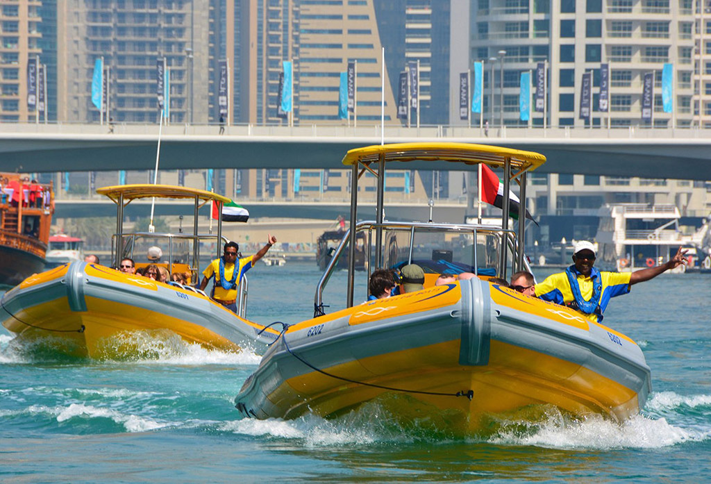 Enjoy the elegance of Dubai’s coastline from water through this yellow RIB (rigid inflatable Boat) cruise tour. With a convenient pickup at your hotel in Dubai Start your trip around the stunning vista of Dubai marina and then into the open water where you will cruise along the amazing Palm Jumeirah to get an opportunity for a perfect photography. Enjoy the elegance of Dubai’s coastline from water through this yellow RIB (rigid inflatable Boat) cruise tour. With a convenient pickup at your hotel in Dubai Start your trip around the stunning vista of Dubai marina and then into the open water where you will cruise along the amazing Palm Jumeirah to get an opportunity for a perfect photography.