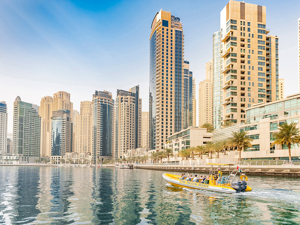 Cruise through the Dubai marina at its spectacular modern skyline, exclusive yachts in dock. Pass by the Dubai Marina Yacht Club and the five star hotels along the beach and the fabulous JBR walk.