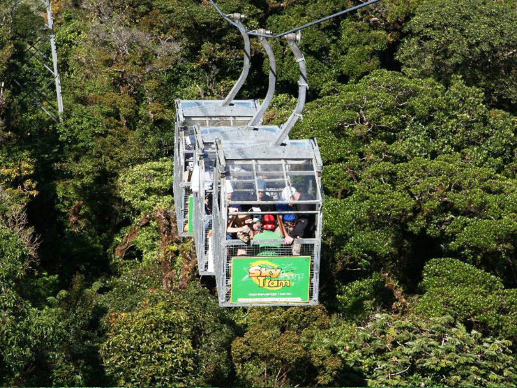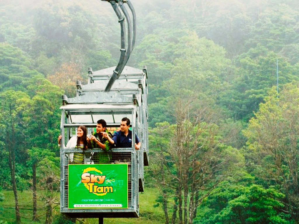 Afterwards, you enjoy the Sky Tram. It is a guided tour, and you get the opportunity of an intermediate ride with short stops to observe the cloud forest biodiversity; the Arenal, Tenorio, Miravalles and Orosi Volcanoes; the Nicoya Gulf; and the Guanacaste Plain, if the weather permitting. The gondolas have been adapted for people with some disability.