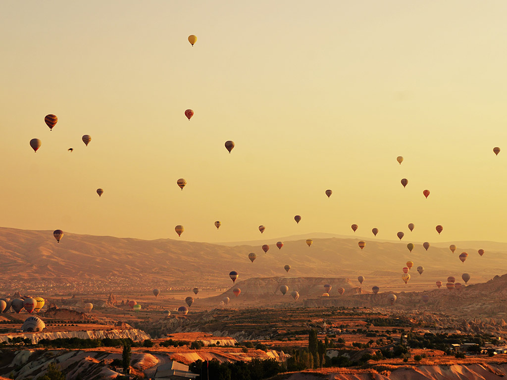 Treat your senses with a magical hot-air balloon ride as the sun rises, and fall in love with the unforgettable other-worldly landscapes of Cappadocia, before learning the secrets of Turkish Cuisine in an exciting and mouth-watering cooking lesson to remember! Treat your senses with a magical hot-air balloon ride as the sun rises, and fall in love with the unforgettable other-worldly landscapes of Cappadocia, before learning the secrets of Turkish Cuisine in an exciting and mouth-watering cooking lesson to remember!Highlights- Soar like a bird over the majestic landscapes of Cappadocia - Feast your appetite with a Turkish cooking lesson - Toast your hot-air balloon ride with a class of bubbling champagne Fly over one of the most spectacular sceneries in the world! We offer you the chance to see this other angle the magical Cappadocia. The tour starts very early in the morning enjoying a light breakfast with tea, coffee and pastries before boarding the balloon. The tour lasts one hour in which you will enjoy the scenery with the first light of day. After the flight, celebrate landing with a glass of champagne. You will receive a certificate of participation.