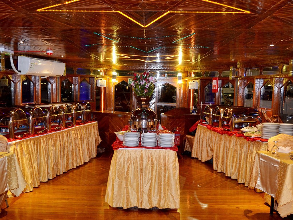 The traditional dhow will sails past the world renowned Al Bustan Palace hotelstanding tall amojn lush green palm groves as then will move towards the Nalali fort where you can have a glimpose of the splended Al Alam Palace, the officeial residence of Sultan Built in 1970s. You will get an opportunity to see the majestic Mirani fort that is beisde the Al Alam Palace built in 17th Century. After sailing past the 2 portuguest forts from Muscat Harbour Lubna (Dhow) loops back and retraces marina Bandar.