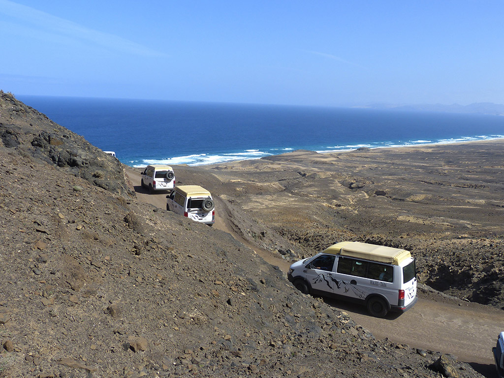 The plunging volcanic landscape of Fuerteventura's mountainous interior is scaled from the seemingly endless coastline of the vast Atlantic Ocean. The best way to navigate this rugged and somewhat unforgiving terrain is in an off-road 4x4, for a full day.