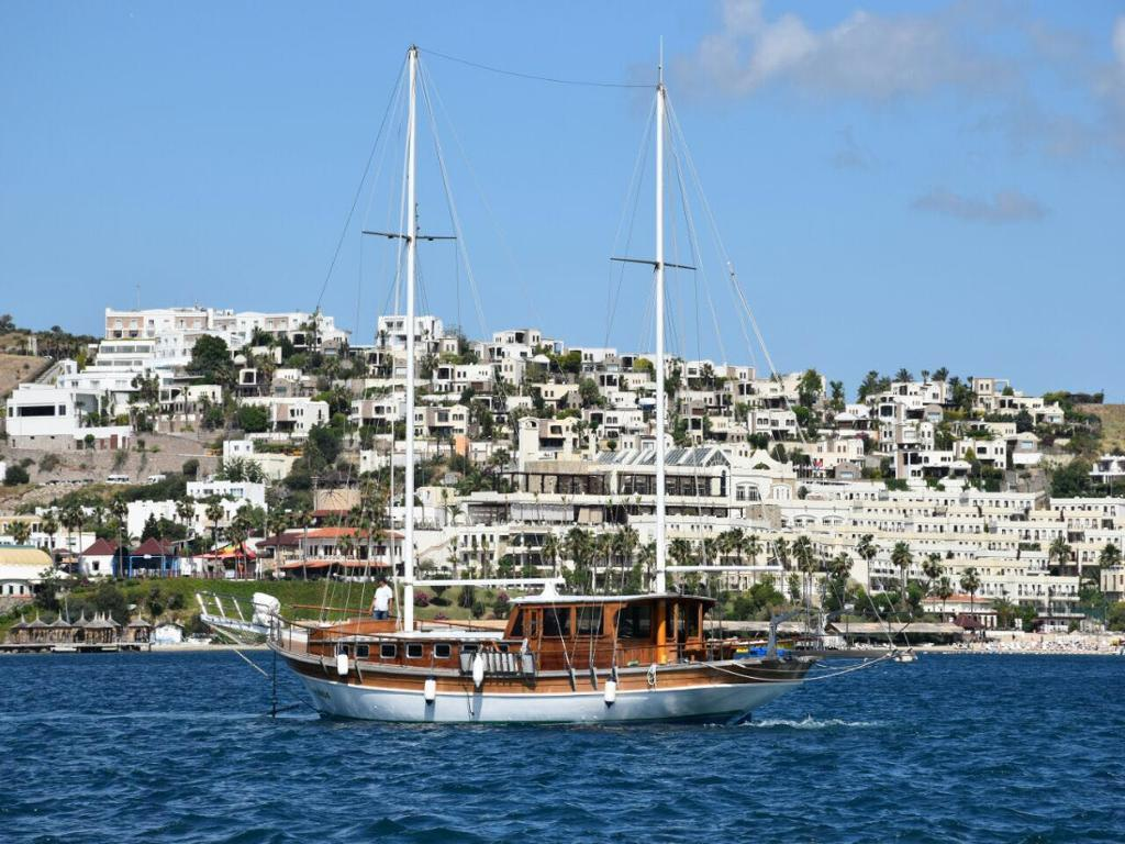 Splash out on your own private Turkish boat for a day with a group of friends or family, or make it a romantic trip with a loved one. This one day charter is on a 'gulet', a traditional Turkish sailing vessel with two masts and built from wood in the boat yards of south west Turkey. Also fitted with a motor so that it can cover more distance, the gulet departs from Bodrum harbour and sails around the beautiful Bodrum coastline, stopping off three times during the day so that you can enjoy the clear, turquoise waters of the Aegean Sea with a refreshing swim or perhaps go snorkelling. Measuring 20m long and 4.5m wide, the gulet will hold 34 people but on this VIP cruise a maximum of 8 are allowed so there is plenty of room to stretch out on deck, sunbathe on the sun mattresses, relax and dream that you are the skipper for the day; there is plenty of shade for those who prefer to stay out of the sun.
