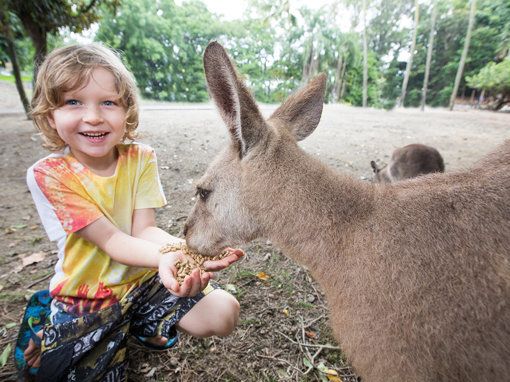 In the Wetlands, look out for the range of birds and other wildlife that call the area home, including the Black-Necked Storks. Make your way to the top of the elevated Stork Tower and enjoy an unprecedented view of their nest (and eggs, if you’re lucky!). Over in the Grasslands, you will have the opportunity to hand-feed kangaroos and wallabies and admire the endangered Lumholtz’s Tree Kangaroos.