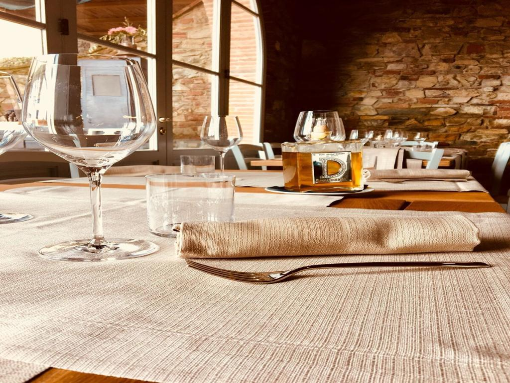 The gourmet menu may change according to the season, but an example could be local charcuterie (cold-cuts like typical prosciutto – Tuscan ham – and salami) and a cheese selection, paired with different jams and balsamic vinegar, the first course with pasta and a main course made of a traditional meat dish. A Tuscan dessert is then served with local sweet wine.
