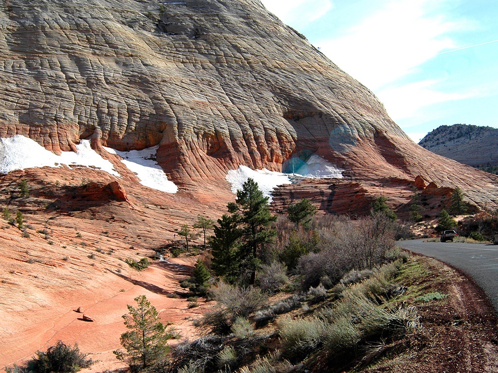 Notable geographical features of the park, which leave visitors in awe, include the Virgin River Narrows, Emerald Pools, Hidden Canyon, Angels Landing, The Great White Throne, Checkerboard Mesa, The Three Patriarchs, and Kolob Arch. The geology of the Zion and Kolob canyons area includes nine formations that together represent 150 million years of mostly Mesozoic-aged sedimentation. This entire area was truly created by the hand of God.